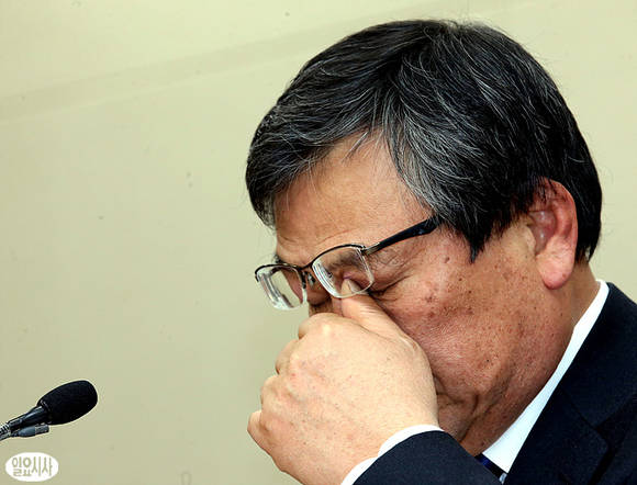 최문기 미래창조과학부 장관 내정자가 1일 국회에서 열린 인사청문회에 참석해 소관 상임위인 미래창조과학방송통신위원회 위원들의 질의 답변 도중 눈을 비비고 있다.
