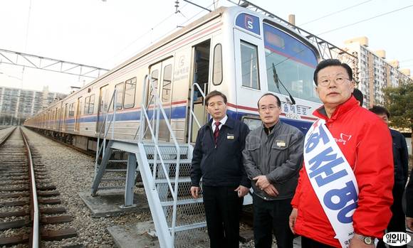 4ㆍ24 서울 노원병 국회의원 보궐선거에 출마한 허준영 새누리당 후보가 3일 오후 서울 노원구에 위치한 서울메트로 창동차량사업소를 방문해 직원들과 함께 둘러보고 있다.