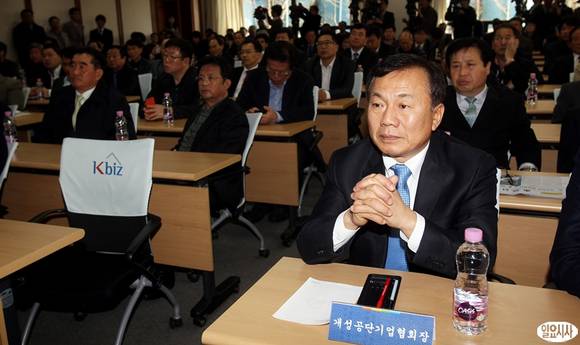 9일 오전 서울 여의도 중소기업중앙회에서 북한 당국의 개성공단 통행제한 조치에 따른 조업중단 사태와 관련해 긴급 대책회의가 열리고 있는 가운데 한재권 개성공단기업협회장이 심각한 표정을 짓고 자리에 앉아 있다.