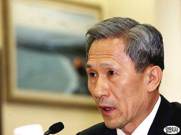 김관진 국방부장관이 15일 오전, 서울 여의도 국회에서 열린 국방위원회 전체회의에 출석해 법안 제안 배경에 대해 진지한 표정으로 설명하고 있다.