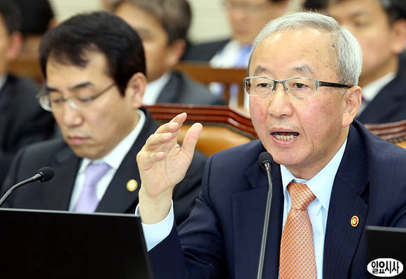 현오석 경제부총리 겸 기획재정부 장관(사진 우)이 15일 오전, 서울 여의도 국회의사당에서 열린 기획재정위원회 전체회의에서 의원들의 질의에 대답하고 있다.