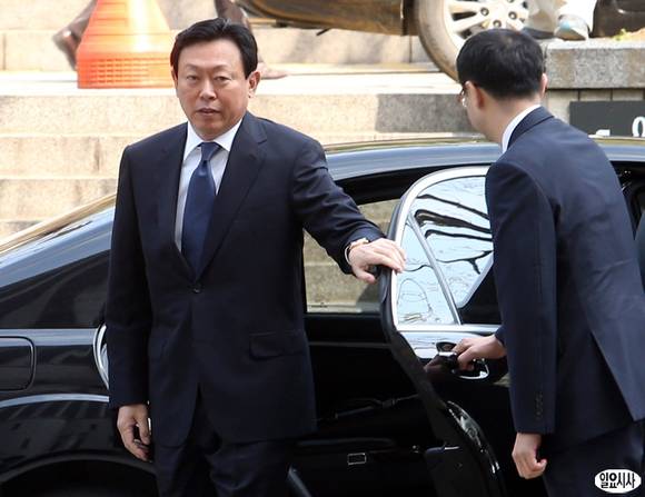 국회 국정감사와 청문회에 불출석 혐의로 기소된 신동빈 롯데그룹 회장이 26일 서울 서초구 서초동 서울중앙지법에 공판을 받기 위해 출석하고 있다.