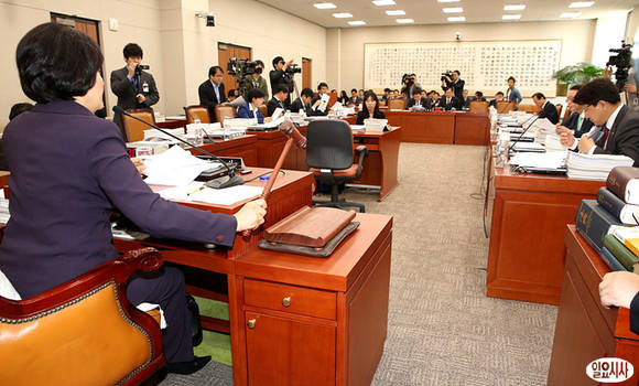 박영선 국회 법사위원장이 30일 오후 국회 법제사법위원회에서 대기업의 이른바 납품단가 후려치기에 대한 징벌적 손해 배상을 강화하는 내용의 하도급법 개정안 통과를 알리는 의사봉을 두드리고 있다.