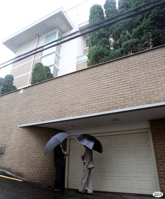CJ 그룹의 비자금 조성 의혹을 수사하고 있는 검찰이 이재현 CJ 그룹 회장의 자택을 압수수색한 29일 서울 장충동에 위치한 이 회장 자택 앞에서 CJ 그룹 관계자들이 분주하게 움직이고 있다.