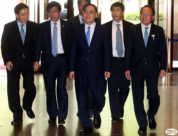 정홍원 국무총리(가운데)가 31일 오후 서울 중구 호암아트홀에서 열린 제23회 호암상 시상식에 참석하고 있다.