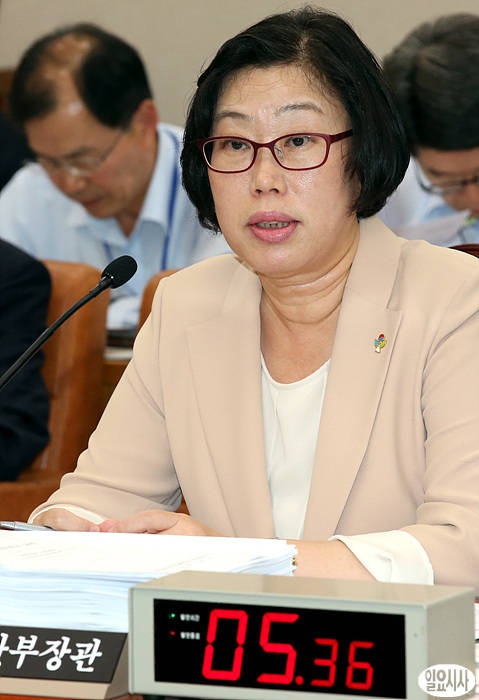 윤진숙 해양수산부 장관이 18일 국회 농림축산식품해양수산위원회에서 의원들의 질의에 답변하고 있다.