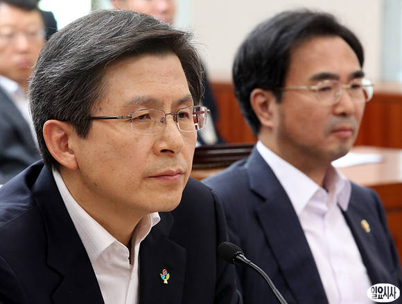 황교안 법무부 장관이 26일 국회에서 열린 법제사법위원회 전체회의에서 의원의 질의를 경청하고 있다.