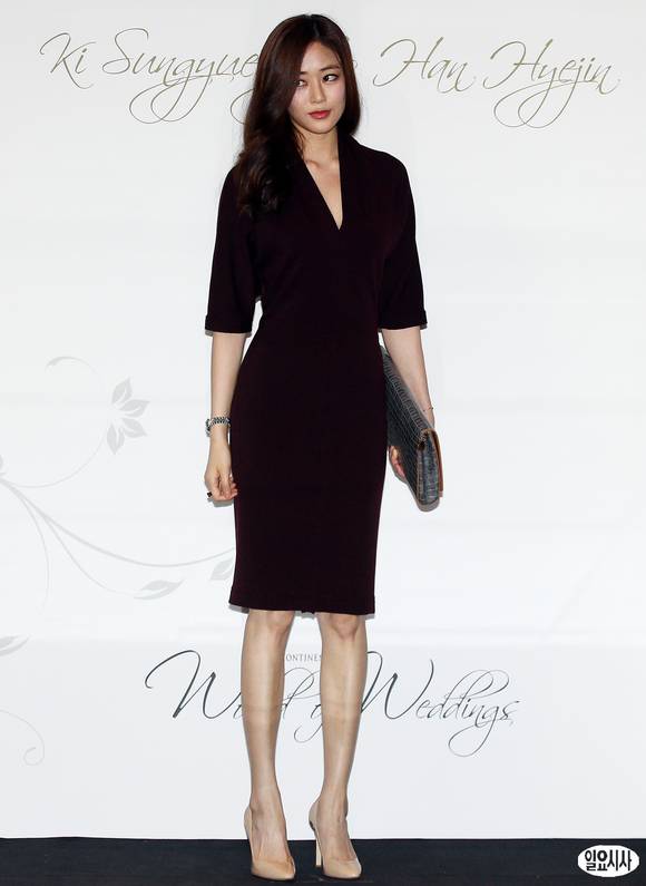 배우 김효진이 1일 오후 삼성동 인터컨티넨탈 서울 코엑스호텔에서 열린 축구선수 기성용과 배우 한혜진 커플의 결혼식에 참석해 포토타임을 갖고 있다.