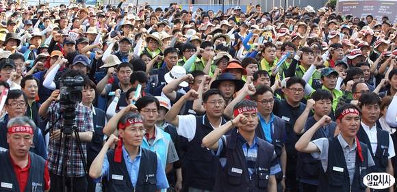 민주노총 금속노조 조합원들이 3일 오후 서울역 앞 광장에서 열린 '2013년 투쟁승리 전국금속노동자 결의대회'에서 구호를 외치고 있다.