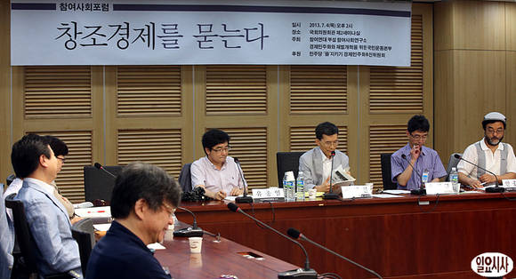 유종일 KDI국제정책대학원 교수가 4일 오후, 참여연대 부설 참여사회연구소와 경제민주와와 재벌개혁을 위한 국민운동본부 공동주최로 국회 의원회관에서 열린 '창조경제를 묻는다' 포럼에서 발제하고 있다.