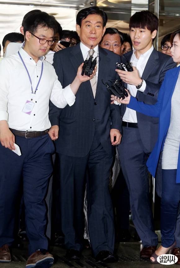 건설업자로부터 억대의 금품 수수 의혹을 받고 있는 원세훈 전 국정원장이 10일 오전 서울 서초동 서울중앙지법으로 영장실질심사를 받기 위해 들어서며 취재진의 질문을 듣고 있다.