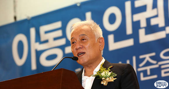 새누리당 민현주, 민주당 남윤인순 의원이 공동 주최한 국제입양 아동의 안전 보장을 위한 헤이그 협약 비준·이행과 아동인권 보장 방안을 모색하기 위해 마련된 토론회가 10일 오후, 국회에서 열리고 있는 가운데 민주당 김한길 대표가 축사를 하고 있다.