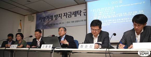 안철수 무소속 의원의 정책네트워크인 '내일' 주최로 20일 오후, 국회도서관에서 '차명거래 방지 자금세탁 근절 어떻게 이룰 것인가?' 토론회가 진행되고 있다.