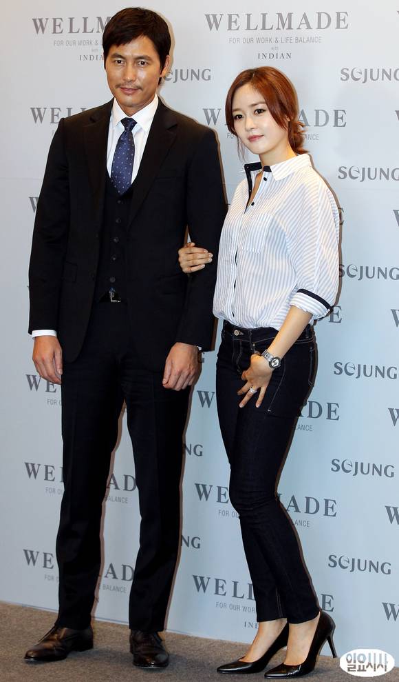 26일 오전 서울 중구 플라자호텔에서 열린 세정그룹 통합 유통 브랜드 '웰메이드' 론칭 행사에서 홍보모델 정우성, 성유리가 포즈를 취하고 있다.