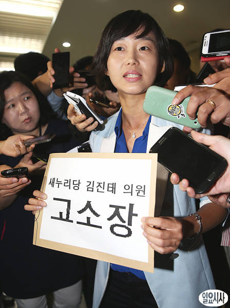 3일 오전, 통합진보당 김재연 의원이 국회 정론관에서 RO(Revolutionary Organization·혁명 조직) 조직원 발언을 했던 새누리당 김진태 의원에 대해 명예훼손 혐의로 검찰에 고소하겠다고 밝힌 후 취재진들의 질문에 답변하고 있다.
