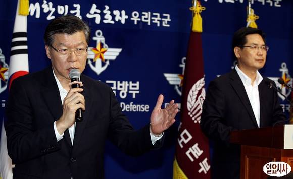 24일 오후 서울 용산구 국방부 브리핑실에서 오태식 사업관리본부장이 차기전투기 F-15SE 선정안 부결과 관련, 취재진 질문에 설명하고 있다. 방위사업청은 이날 김관진 국방부 장관 주재로 열린 방위사업추진위원회 회의에서 차기전투기 사업에 단독 후보로 오른 미국 보잉의 F-15SE에 대한 선정안을 심의해 부결했다.