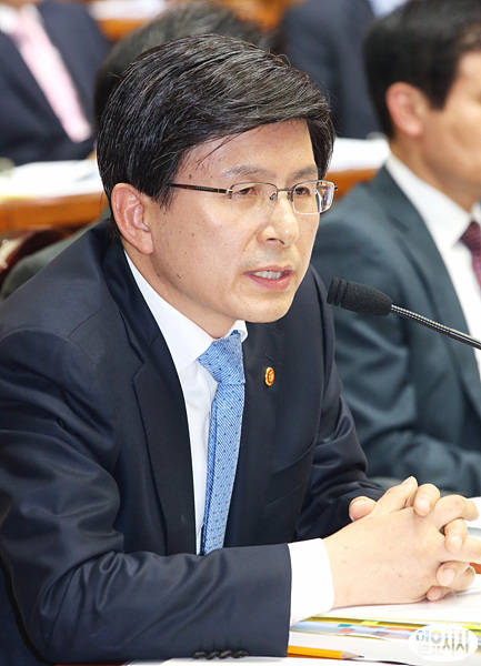 황교안 법무장관이 30일 오후 열린 국회 사법제도개혁특위에 출석해 야당의원들의 질의에 답변하고 있다.