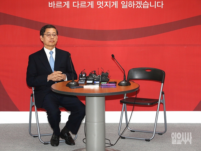 17일, 서울시장 경선 출마를 발표한 김황식 전 총리가 서울 여의도 본인의 사무실에서 정몽준 새누리당 최고위원을 기다리고 있다.