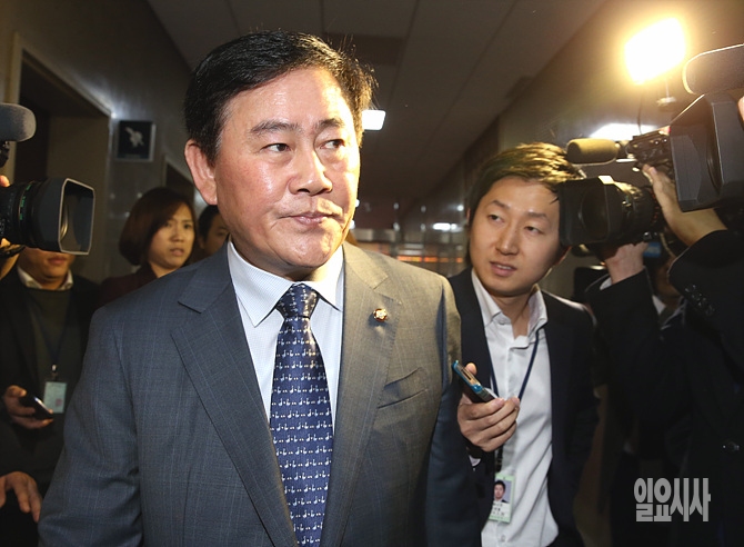 17일, 최경환 새누리당 원내대표가 국회의장실에서 열린 강창희 의장과 여야원내지도부 회동 직전, 묘한 표정을 지으며 입장하고 있다.