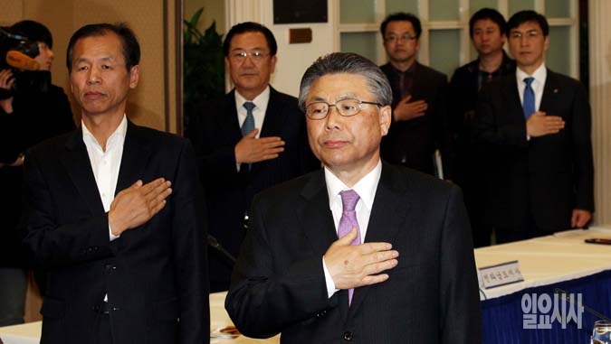 17일 서울 중구 프레스센터에서 열린 '제28차 전국시도지사협의회 총회'에서 전국시도지사협의회 회장인 박맹우 울산시장을 비롯한 참석자들이 국기에 대한 경례를 하고 있다.