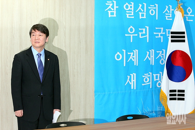 19일, 안철수 새정치연합 중앙운영위원장이 여의도 사무실에서 가진 공동위원장회의에 먼저 참석해 있다.