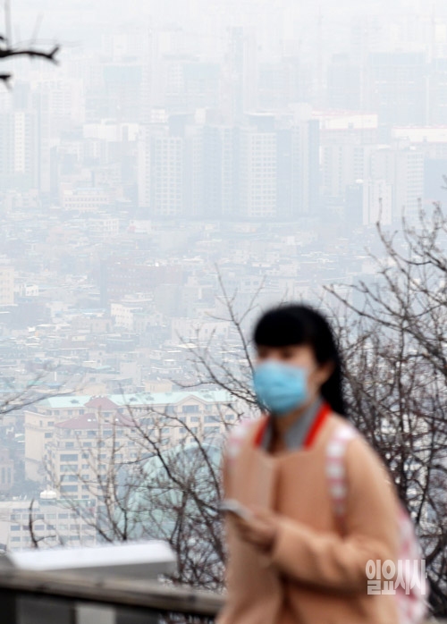 19일 중국발 황사와 미세먼지로 서울 남산에서 바라본 서울 도심이 뿌옇게 보이고 있다.