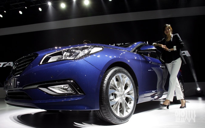 현대자동차가 24일 서울 삼성동 코엑스에서 7세대 모델로 새롭게 진화한 '신형 쏘나타'를 공개하고 있다. 이번에 출시된 '신형 쏘나타'는 디자인과 주행성능, 안전성에 이르는 전 부문에서 현대차의 최신 기술력이 모두 집약된 월드 프리미엄 중형 세단이다.