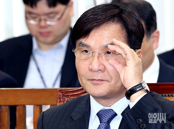 24일 오전, 강병규 안전행정부 장관 후보자가 서울 여의도 국회에서 열린 인사청문회에 출석 도중 안경을 만지고 있다.