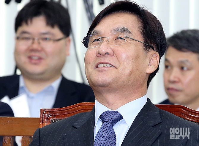 24일 오전, 강병규 안전행정부 장관 후보자가 서울 여의도 국회에서 열린 인사청문회에 출석 도중 잠시 웃음 짓고 있다.