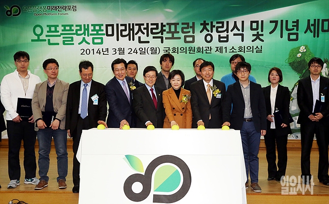 24일 오후 국회 의원회관에서 열린 오픈플랫폼 미래전략포럼 창립식에서 참석자들이 기념 축포를 터뜨리고 있다.