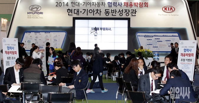25일 서울 삼성동 코엑스에서 열린 2014 현대ㆍ기아자동차 협력사 채용박람회에서 구직자들이 일자리를 알아보고 있다.