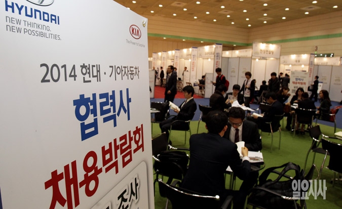 25일 서울 삼성동 코엑스에서 열린 2014 현대ㆍ기아자동차 협력사 채용박람회에서 구직자들이 일자리를 알아보고 있다.