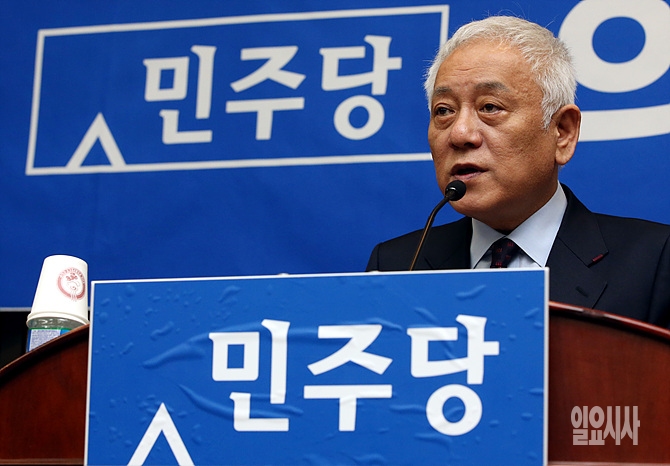 김한길 민주당 대표가 25일 오전, 새정치민주연합 중앙당 창당대회를 하루 앞둔 마지막 의원총회서 모두발언하고 있다.