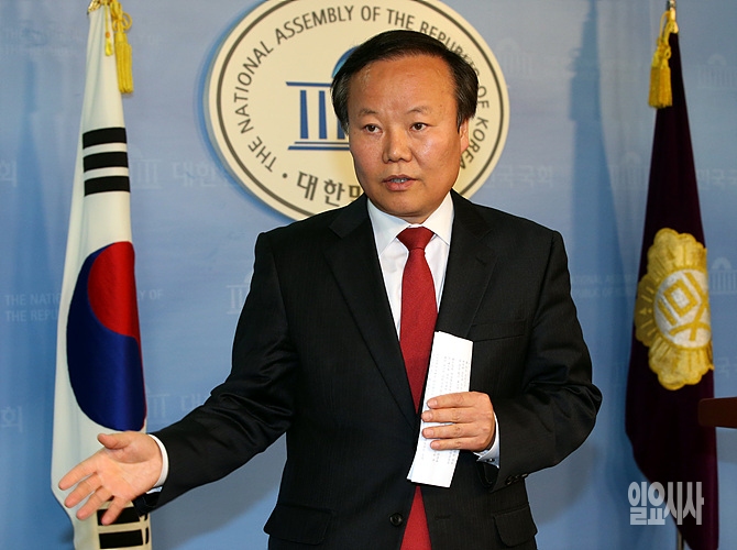 25일 오후, 새누리당 김재원 공천위 부위원장이 서울 여의도 국회 정론관에서 공천위회의 결과를 브리핑하고 있다.