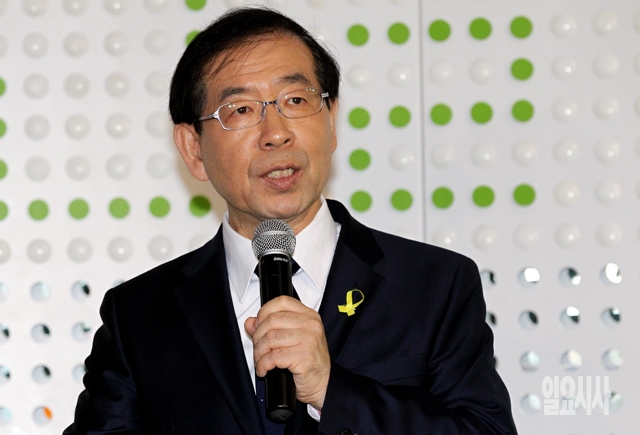 박원순 서울시장 후보가 15일 서울시청에서 서울시장 출마선언 기자회견을 갖고 있다.