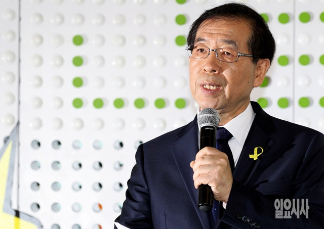 박원순 서울시장 후보가 15일 서울시청에서 서울시장 출마선언 기자회견을 갖고 있다.