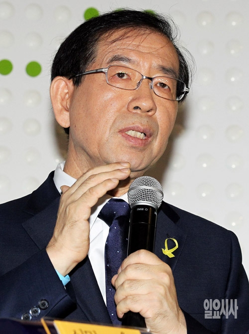 박원순 서울시장 후보가 15일 서울시청에서 서울시장 출마선언 기자회견을 갖고 있다.