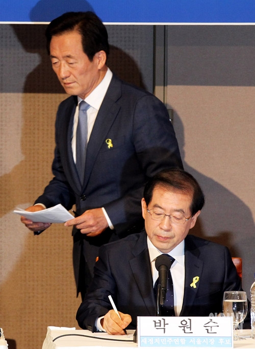 [포토] 박원순 옆 지나가는 정몽준