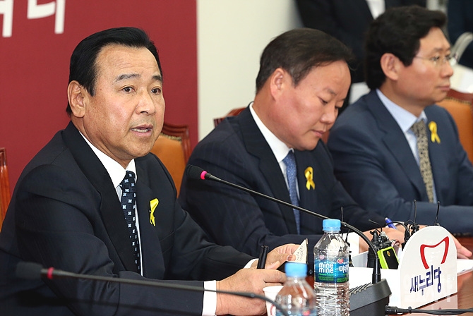 19일 오후, 새누리당 이완구 원내대표가 이날 오전 박근혜 대통령의 세월호 관련 대국민담화에 대해 발언하고 있다.