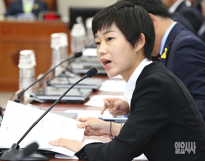 19일, 통합진보당 김재연 의원이 세월호 관련 기재위 전체회의에 출석해 현오석 기획재정부 장관에게 질의하고 있다.