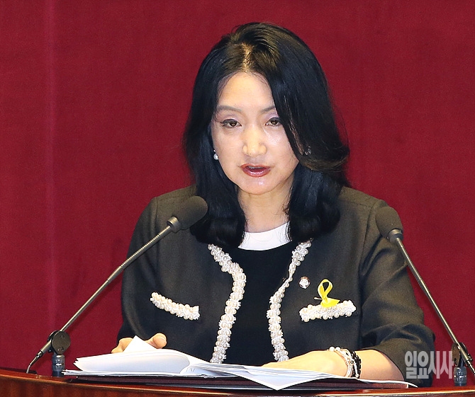 20일, 서울 여의도 국회 본회의장에서 열린 세월호 관련 긴급현안질문에서 새누리당 문정림 의원이 질의하고 있다.