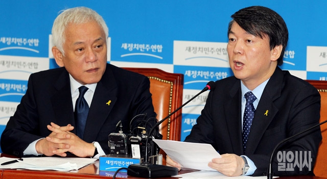 안철수 새정치민주연합 공동대표(오른쪽)가 21일 서울 여의도 국회에서 열린 전국 시도당위원장 연석회의에서 모두발언을 하고 있다.