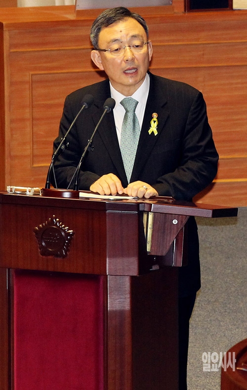 최성준 방송통신위원장이 21일 서울 여의도 국회에서 열린 본회의에서 의원들의 세월호 침몰사고에 대한 긴급현안질문에 답하고 있다.
