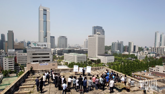 박원순 새정치민주연합 서울시장 후보가 22일 서울 삼성동 구 한국감정원 부지 옥상에서 영동권 종합발전 계획을 발표하고 있다.