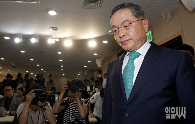 안대희 국무총리 내정자가 22일 서울 세종로 정부서울청사에서 총리 내정에 대한 소감을 밝히기 위해 입장하고 있다.