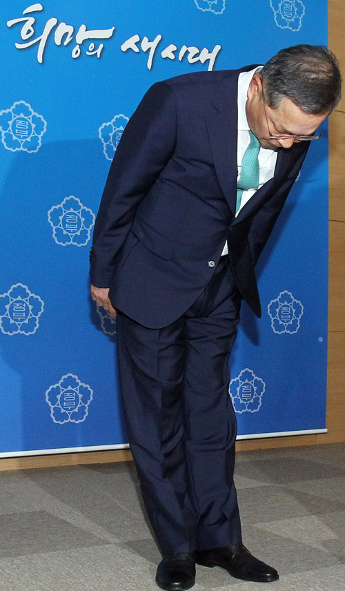 안대희 국무총리 내정자가 22일 서울 세종로 정부서울청사에서 총리 내정 소감 발표에 앞서 인사하고 있다.