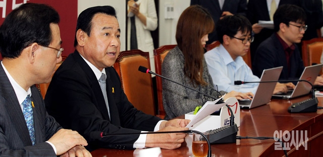 이완구 새누리당 비상대책위원장 겸 원내대표와 23일 서울 여의도 국회에서 기자간담회를 갖고 있다.