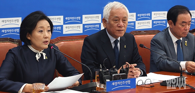 27일 오전, 박영선 새정치민주연합 원내대표가 서울 여의도 새정치민주연합 원내대표실에서 열린 원내대책회의에서 발언하고 있다.