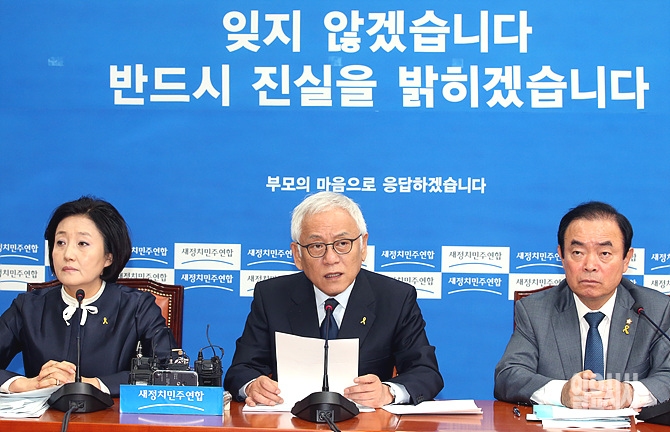 27일 오전, 김한길 새정치민주연합 공동대표가 서울 여의도 새정치민주연합 원내대표실에서 열린 원내대책회의에서 발언하고 있다.