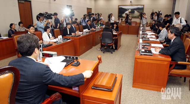 29일 서울 여의도 국회에서 열린 세월호 침몰사고의 진상 규명을 위한 국정조사특별위원회 전체회의에서 심재철 위원장이 국정조사계획서 채택의 건을 의결하고 있다.